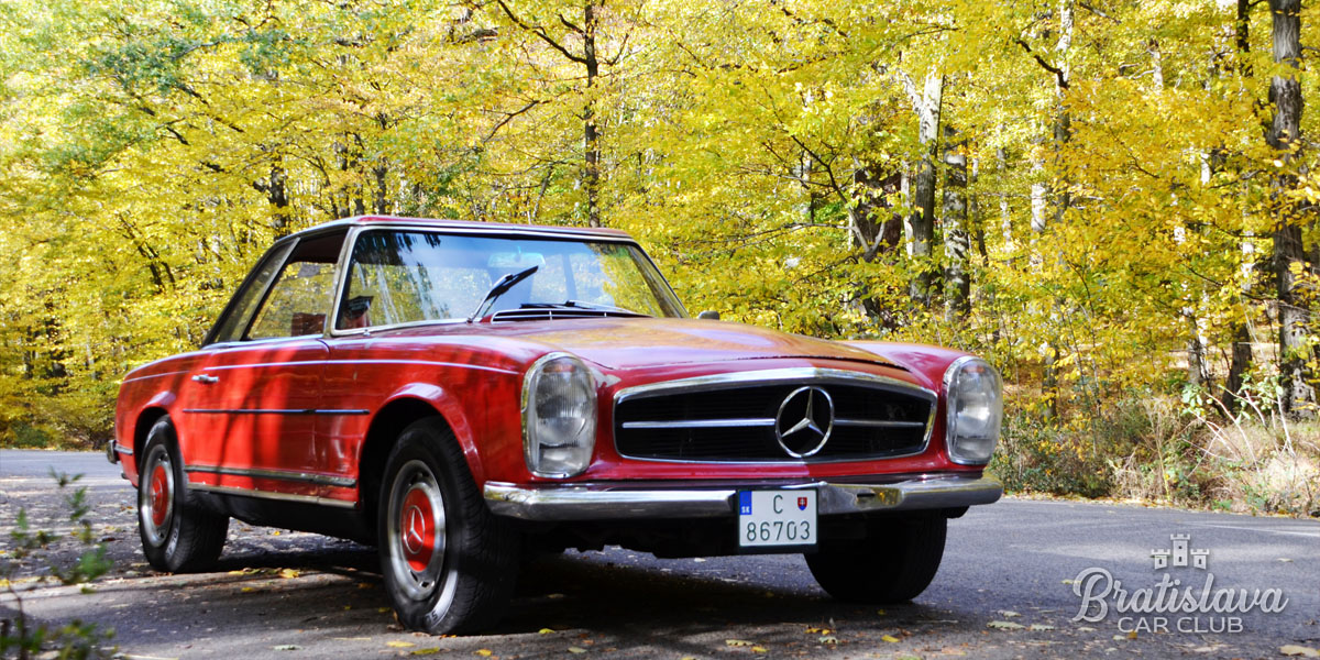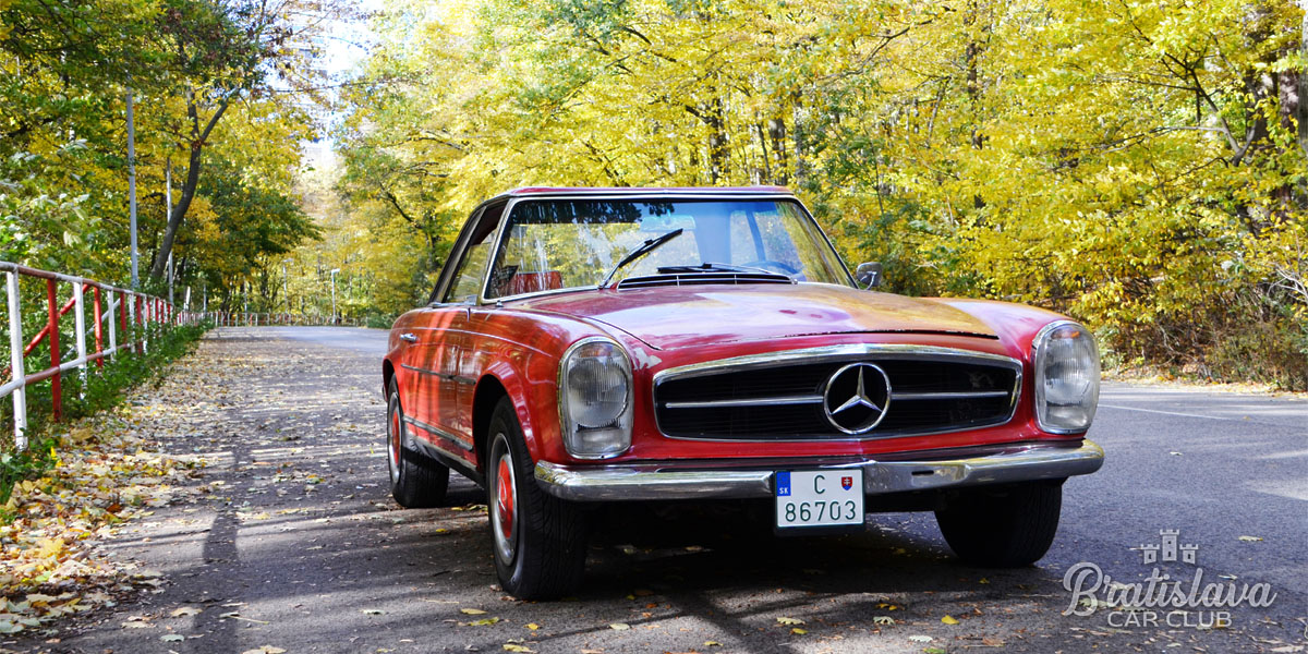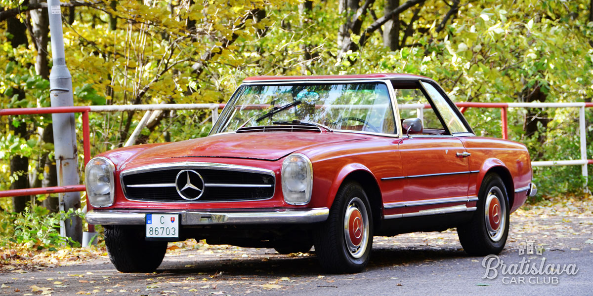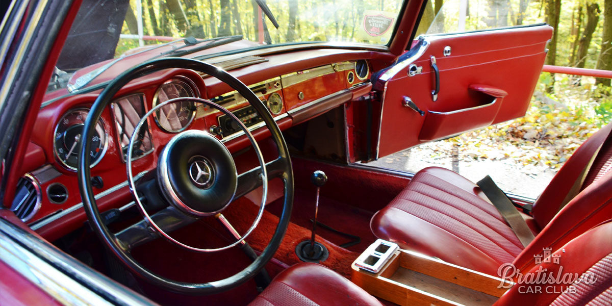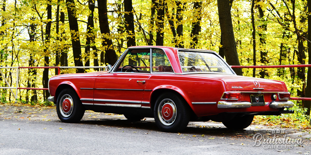 Nádherný 1963 Mercedes-Benz 230SL Pagoda je k dispozícii s plátennou a pevnou strechou. Fantastická červená farba v kombinácii s červeným koženým interiérom.