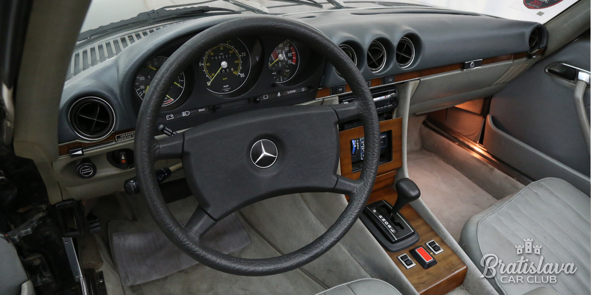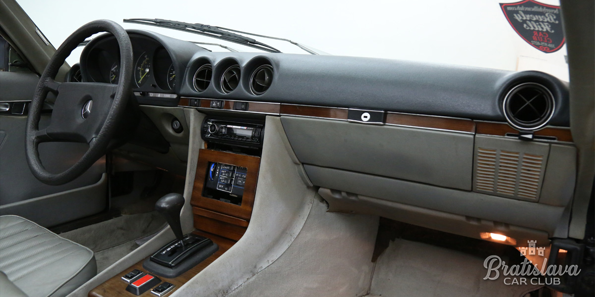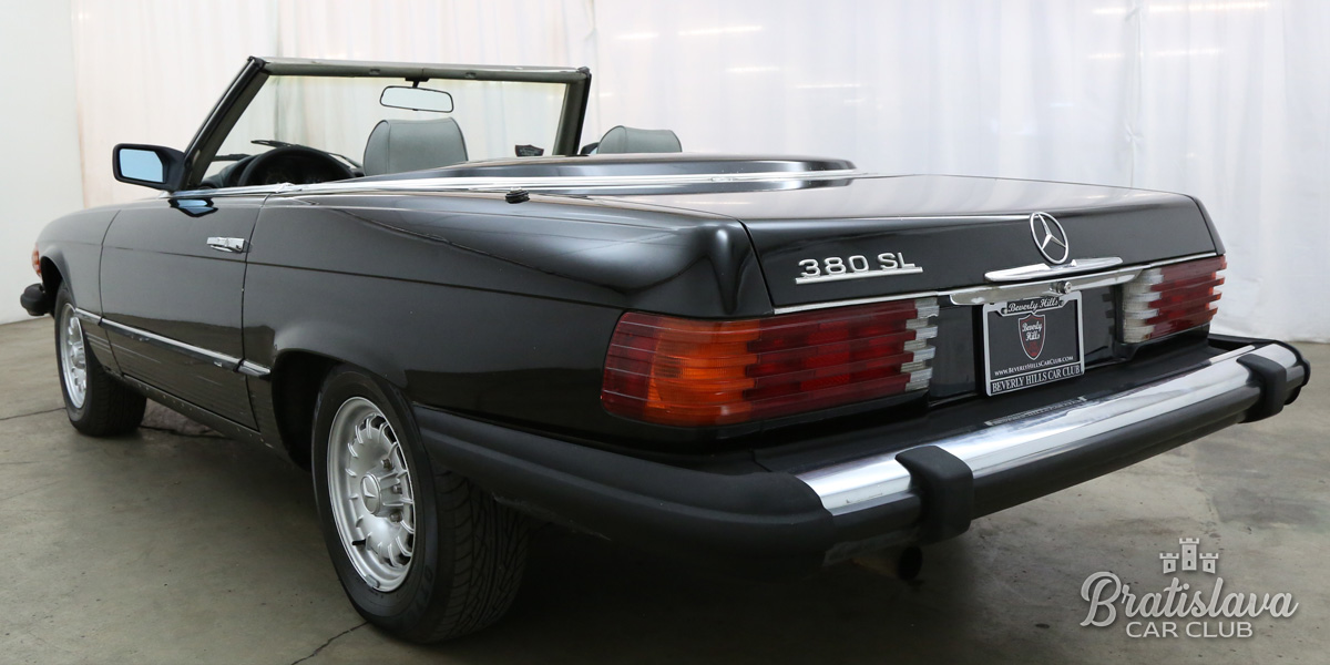Veľmi zachovalý 1981 Mercedes-Benz 380SL je k dispozícii v originálnej farebnej kombinácii s kódovým označením #040G a s šedým koženým interiérom.