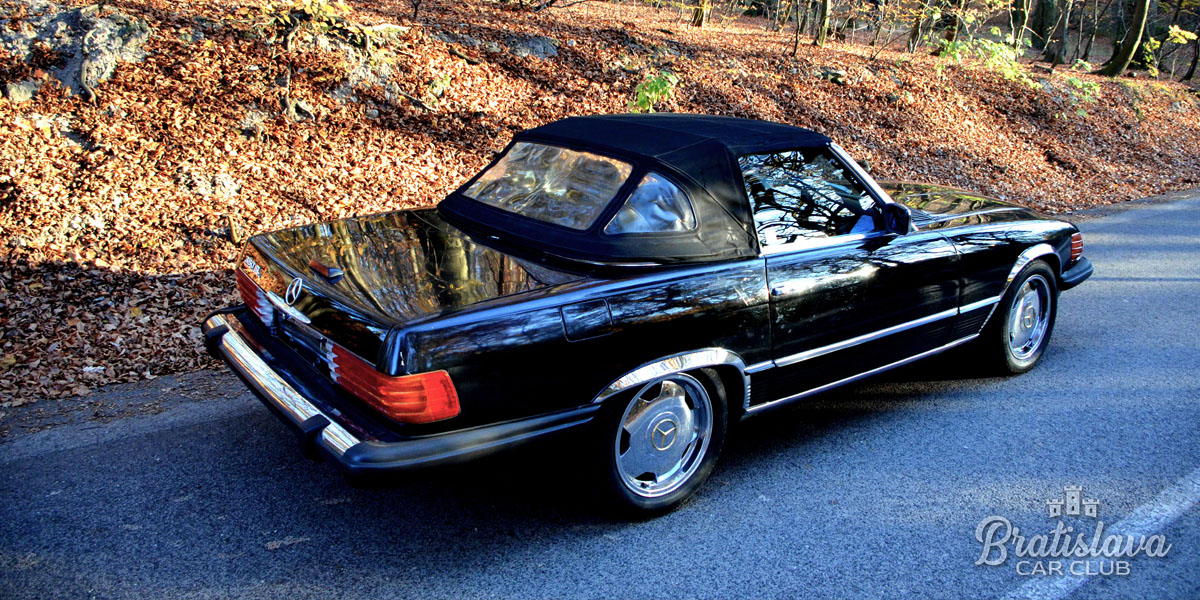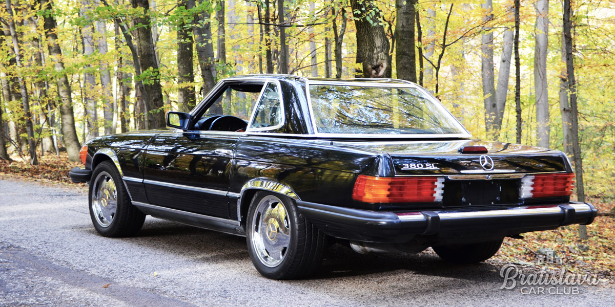 Tento 1984 Mercedes-Benz 380 SL je k dispozícii s plátennou a pevnou strechou, v prevedení čierny exteriér a čierna koža v interiéri. Vybavený automatickou prevodovkou, elektrickými oknami, posilňovačom riadenia, klimatizáciou.